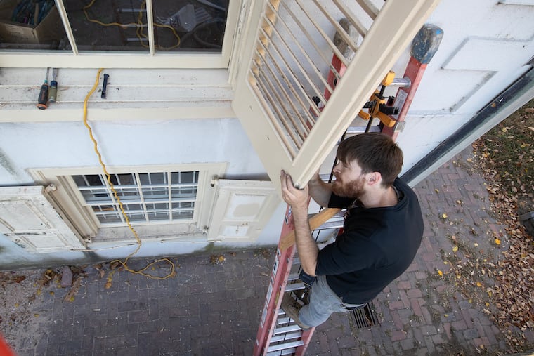 James Breen and Matthew Roberson at West Chester-based R&B Restoration Carpentry have spent more than 300 hours restoring 40-some decaying original windows on the Manleys’ Pottstown home. They’ve had to rebuild original details from more than 200 years ago. And their work’s not done.